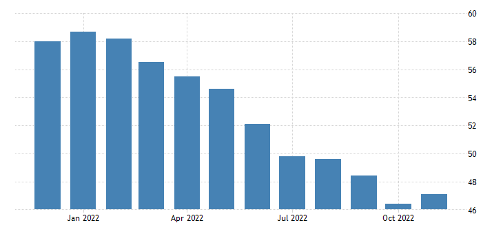 - A five-month downturn in euro-zone manufacturing activity eased in November, with S&P Global’s purchasing managers’ index rising from 46.4 to 47.1. A reading below 50 indicates industry contraction.